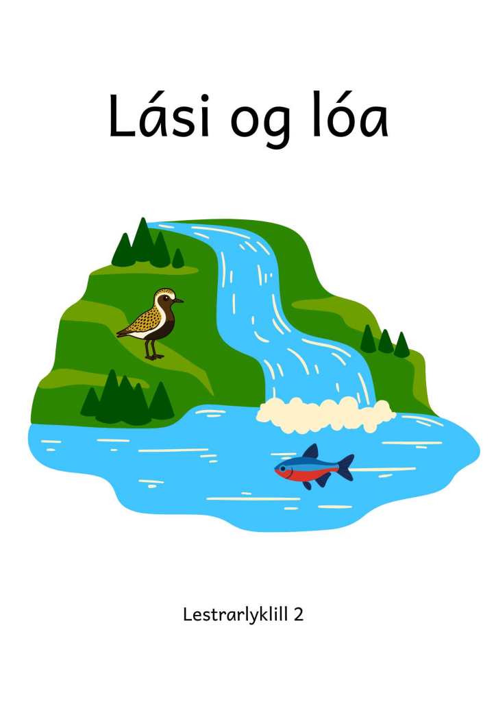 Hér má finna bókina Lási og lóa í henni eru stafirnir í, ó, s, á, l, a, i og r æfðir ásamt orðmyndinni og, er og ekki.